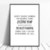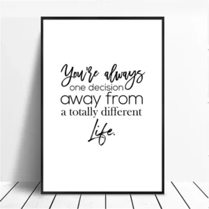 La force décorative de cette affiche murale réside dans son intemporalité. Le noir et blanc permet une intégration facile dans de nombreux styles d’intérieur, du contemporain au minimaliste, en passant par des ambiances plus urbaines ou scandinaves. Le texte devient un véritable élément graphique, capable d’habiller un mur sans surcharge, tout en donnant du caractère à la pièce.