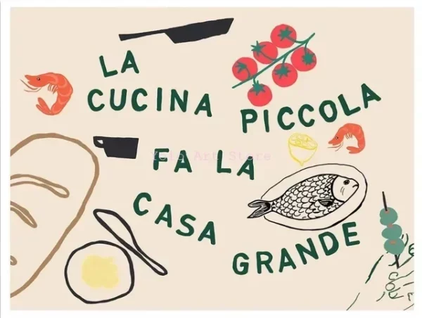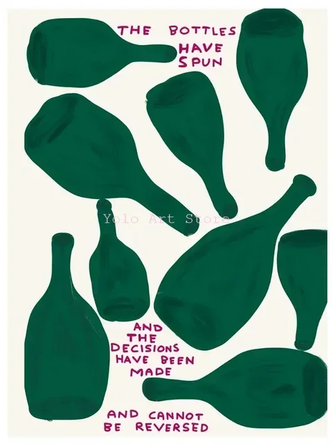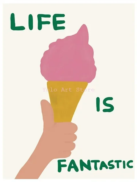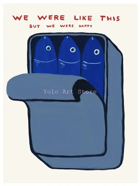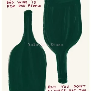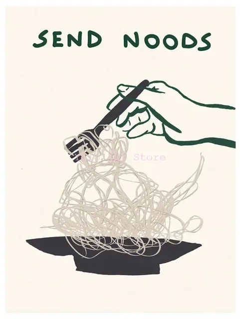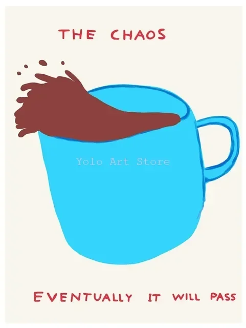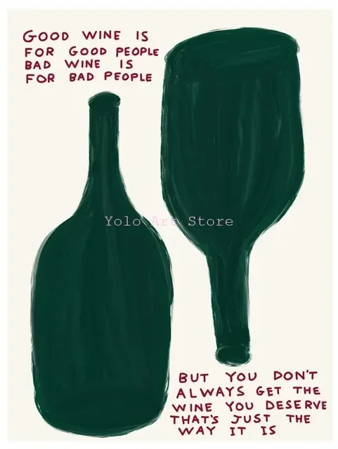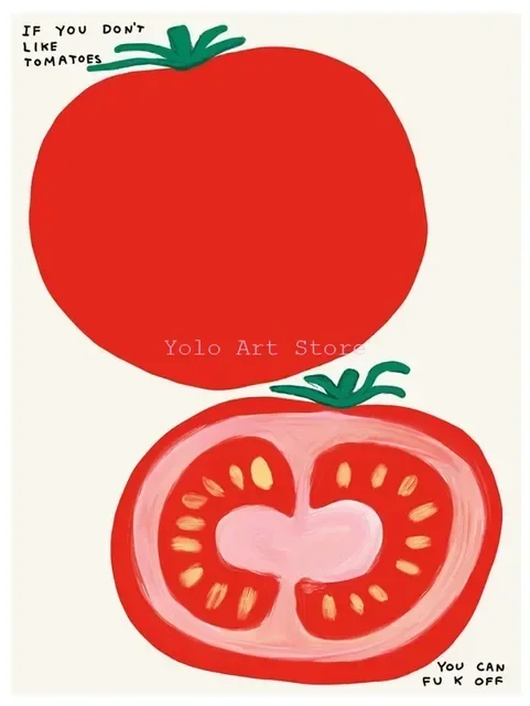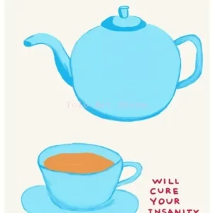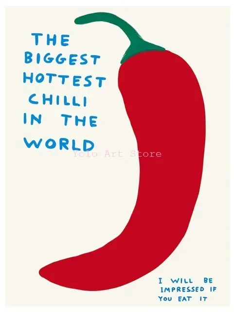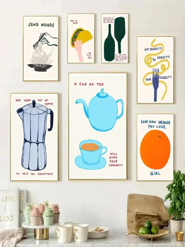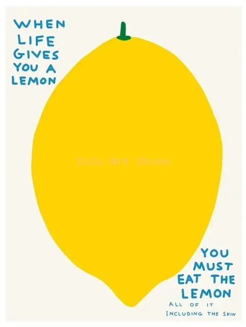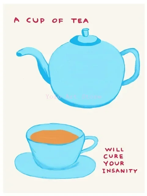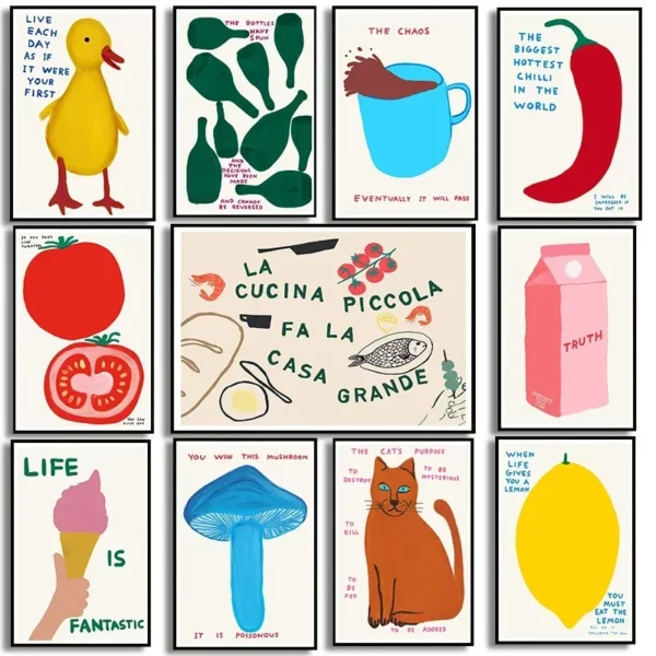 Affiche David Shrigley citation drôle sur la nourriture, fruits, thé, lait, vin