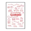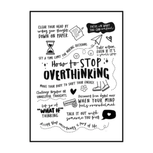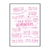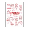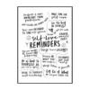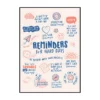 Le style graphique repose sur la simplicité et la lisibilité. Le contraste marqué entre le noir profond des lettres et le blanc du fond renforce l’impact visuel de chaque message. Certaines phrases sont mises en valeur par une taille de caractères plus grande ou par une calligraphie plus expressive, tandis que d’autres adoptent un tracé plus discret, créant une hiérarchie naturelle dans la lecture. Cette affiche déco joue sur la variété typographique sans jamais perdre en cohérence, offrant un rendu à la fois vivant et maîtrisé.