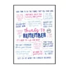 La valeur décorative de cette affiche murale réside dans sa capacité à associer contenu et esthétique. Les textes deviennent des éléments graphiques à part entière, transformant le mur en une surface vivante et expressive. Cette affiche déco s’intègre naturellement dans des intérieurs contemporains, minimalistes ou scandinaves, en dialoguant avec des matières sobres comme le bois, le métal ou le textile clair.