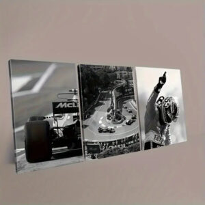 Transformez votre intérieur avec cette affiche triptyque Formule 1, un ensemble unique qui capture l’essence même du sport automobile. Ce visuel réunit trois moments iconiques : la puissance brute d’une monoplace, une vue spectaculaire d’un circuit mythique et la célébration d’un pilote victorieux.