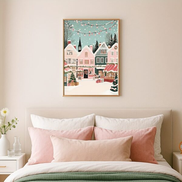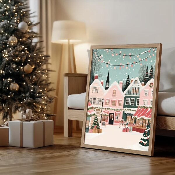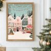 Affiche Village de Noël Illustré – Décoration Murale Hivernale Féérique