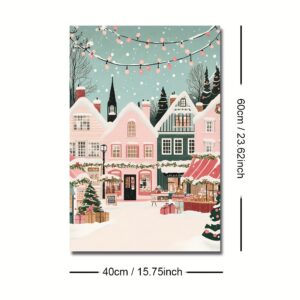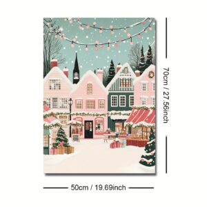 Affiche Village de Noël Illustré – Décoration Murale Hivernale Féérique