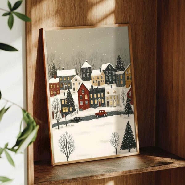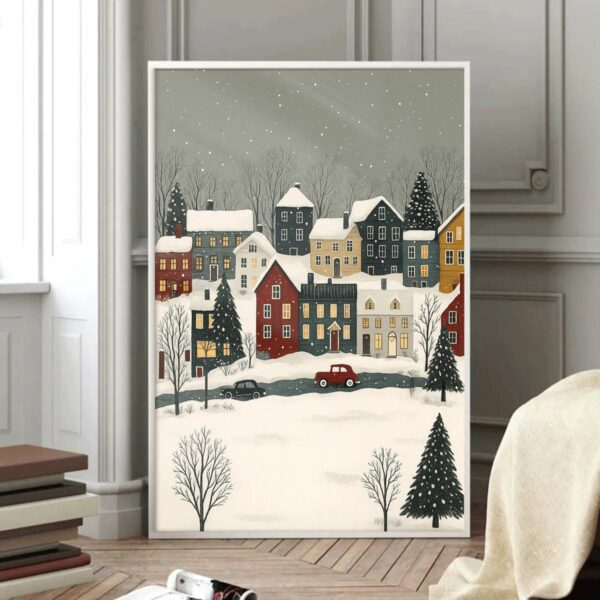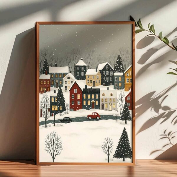 Affiche Village Sous la Neige – Décoration Hivernale Murale Style Scandinave
