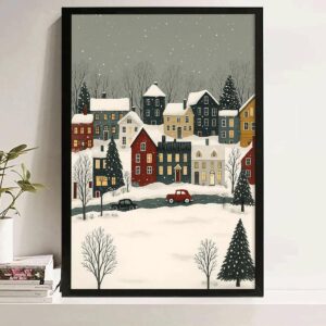Affiche Village Sous la Neige – Décoration Hivernale Murale Style Scandinave