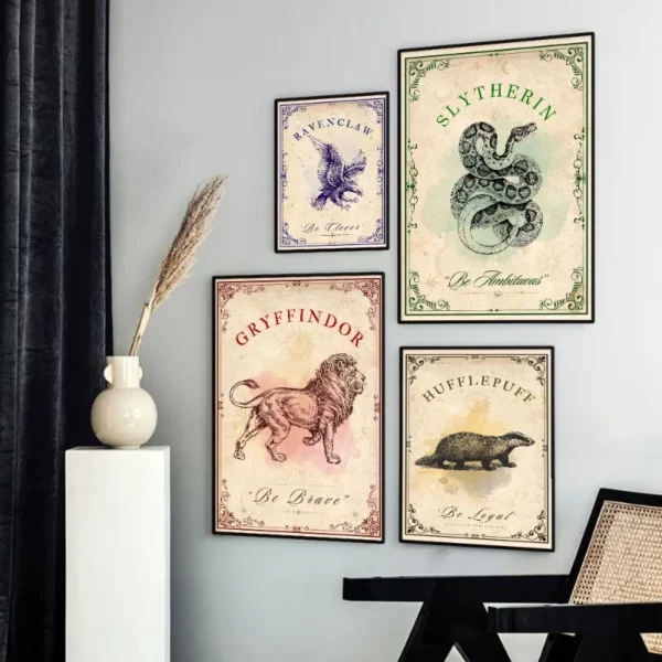 Affiches Maisons Harry Potter Vintage – Gryffondor, Serpentard, Serdaigle & Poufsouffle
