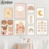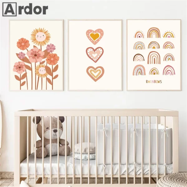 Affiche arc-en-ciel, nuage, lune, soleil, coeur