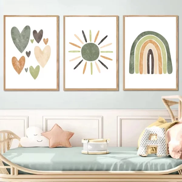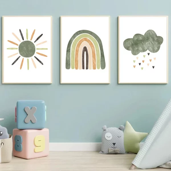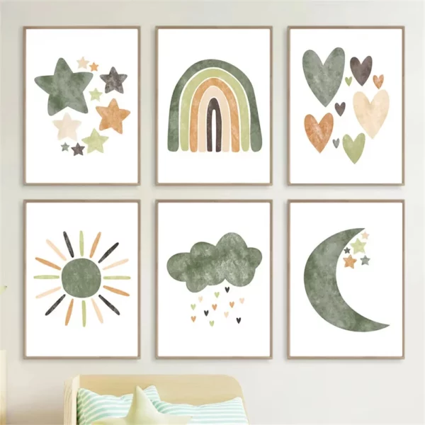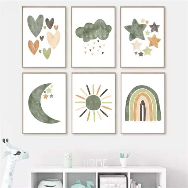 Affiche en toile dessin Vert, Soleil, Nuage, Lune, Arc-en-ciel, Cœur, Étoile