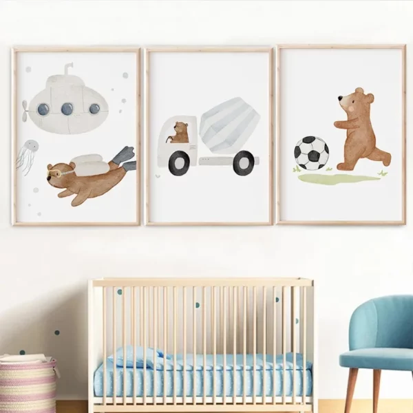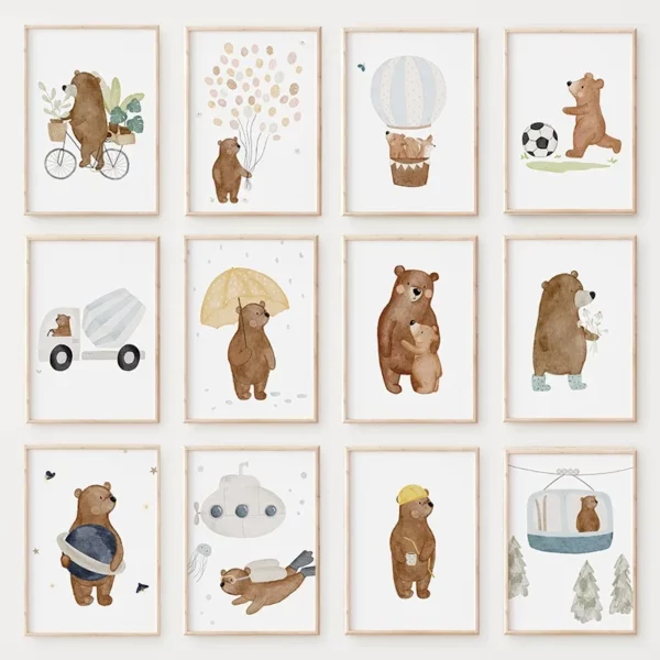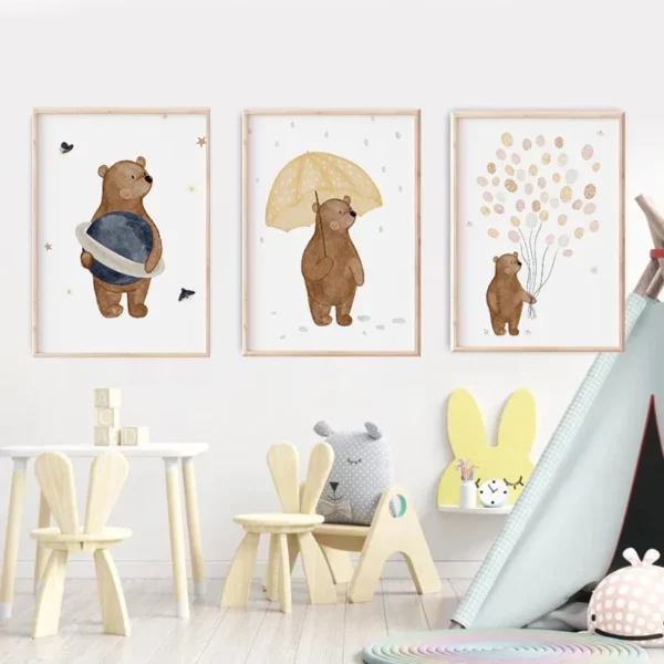 Affiche sur toile de dessin animé, ours mignon