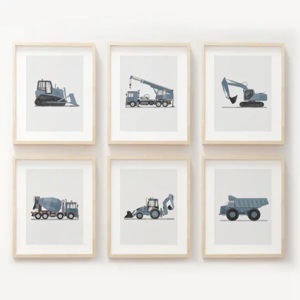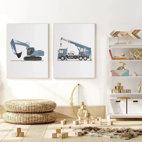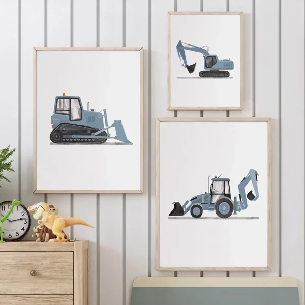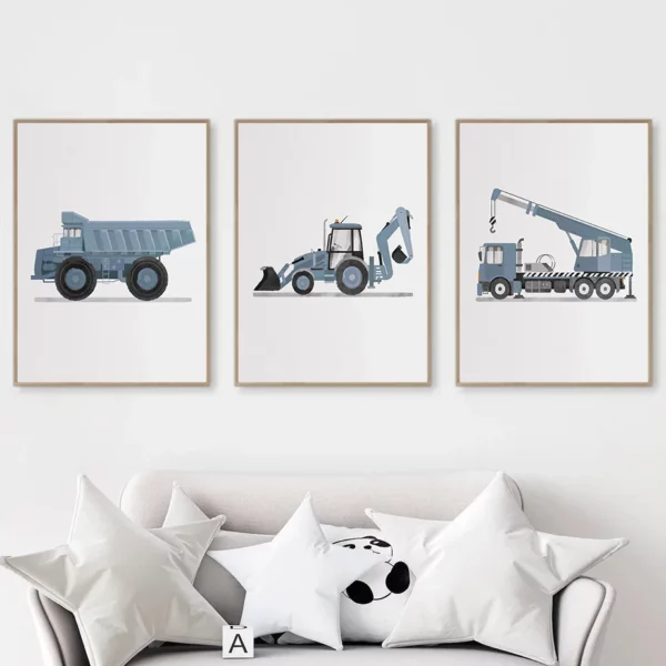 Affiche sur toile de dessin bleu de véhicule d’ingénierie, transport, voiture