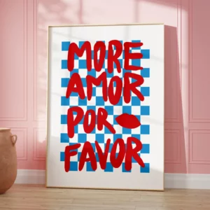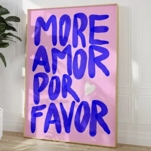 Le message “More Amor Por Favor” — mélange de langues et d’émotions — transmet une invitation simple mais puissante : plus d’amour, s’il vous plaît. Une phrase courte, impactante et résolument actuelle, idéale pour celles et ceux qui aiment les affiches à message, les posters inspirants et la décoration murale positive.