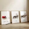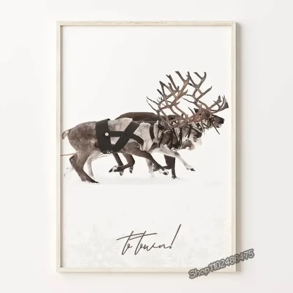 Le design épuré, les tons doux et la mise en scène réaliste des rennes créent un rendu raffiné, parfait pour une décoration de Noël chic, scandinave ou contemporaine. Alignées en triptyque, ces affiches deviennent un élément décoratif fort et harmonieux, idéal pour un salon, une salle à manger ou une entrée.