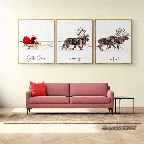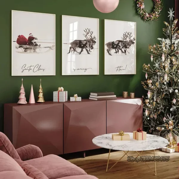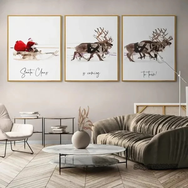 Affiche Santa Claus & Rennes – Décoration Murale de Noël Élégante et Moderne