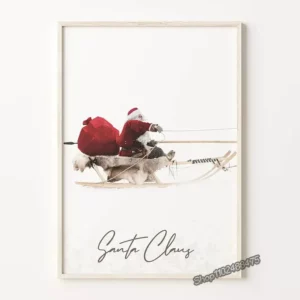 Affiche Santa Claus & Rennes – Décoration Murale de Noël Élégante et Moderne