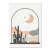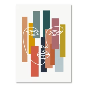 Chaque poster déco se distingue par une identité graphique forte tout en conservant une unité d’ensemble. On retrouve des compositions géométriques circulaires aux lignes nettes, un visage abstrait tracé par des lignes fines et verticales, des feuillages stylisés aux formes pleines, ainsi que des paysages minimalistes évoquant des collines, un soleil bas à l’horizon ou une scène nocturne ponctuée d’un croissant de lune. L’ensemble repose sur un équilibre entre abstraction artistique et lisibilité décorative, ce qui rend cette affiche déco facile à intégrer dans de nombreux intérieurs.