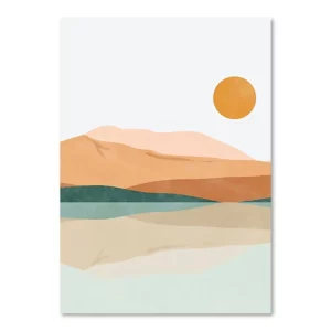La force décorative de ce poster déco réside dans sa polyvalence. Les formes abstraites et les paysages stylisés permettent de dépasser les tendances trop marquées, offrant un visuel intemporel qui conserve sa pertinence dans le temps. Cette affiche murale n’est pas simplement un élément décoratif, elle contribue à définir l’identité de la pièce en apportant rythme, cohérence et élégance graphique.