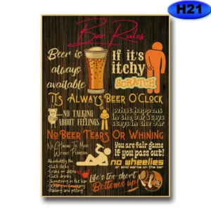 Dans une décoration intérieure, cette affiche trouve naturellement sa place dans un coin bar, une cuisine au style industriel, une salle à manger conviviale ou une pièce dédiée aux loisirs. Elle est également idéale pour un espace professionnel comme un bar, une brasserie ou une salle de dégustation. Associée à des matériaux comme le bois, le métal ou la brique, elle renforce instantanément l’identité du lieu et crée une atmosphère chaleureuse et authentique.