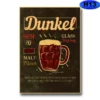 Le style est clairement vintage, avec des fonds sombres, des textures évoquant le bois patiné et des teintes chaudes dominées par le noir, le brun, l’ocre et le doré. Les couleurs rappellent celles de la bière elle-même, du blond lumineux à l’ambré profond, en passant par des nuances plus foncées. Cette affiche design joue sur les contrastes entre textes clairs et fonds foncés pour offrir une excellente lisibilité tout en renforçant son caractère rétro. Le rendu visuel est puissant, presque immersif, et attire immédiatement le regard.