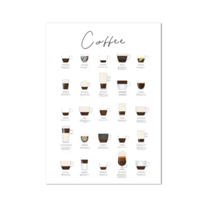 Ce poster déco autour de la Coffee Culture est également une excellente idée pour enrichir une décoration intérieure existante ou pour offrir un objet décoratif intemporel. Facile à associer avec du bois clair, du métal ou des murs neutres, cette affiche murale s’adapte à de nombreux styles d’intérieur. Elle combine esthétisme, douceur visuelle et cohérence graphique pour transformer un mur en véritable élément décoratif, durable et élégant.