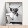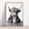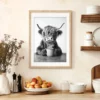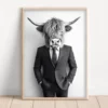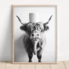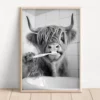 Affiche murale vache Highland noir et blanc – Poster déco humour chic
