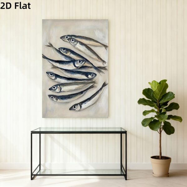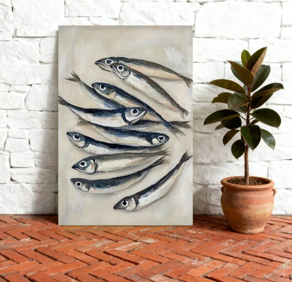 Apportez une touche élégante et marine à votre intérieur avec cette affiche artistique représentant un banc de poissons bleu-gris, peints dans un style texturé et contemporain. Cette illustration raffinée joue sur les nuances naturelles et les coups de pinceau expressifs pour créer une ambiance apaisante, moderne et pleine de caractère.