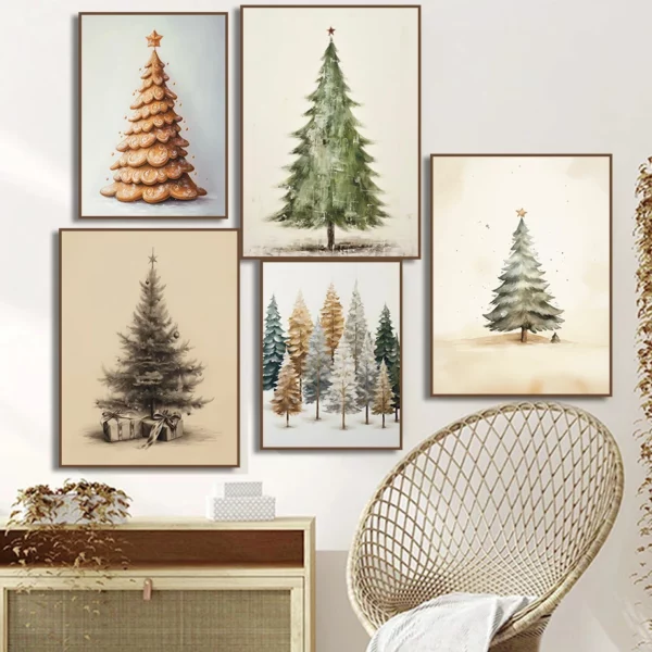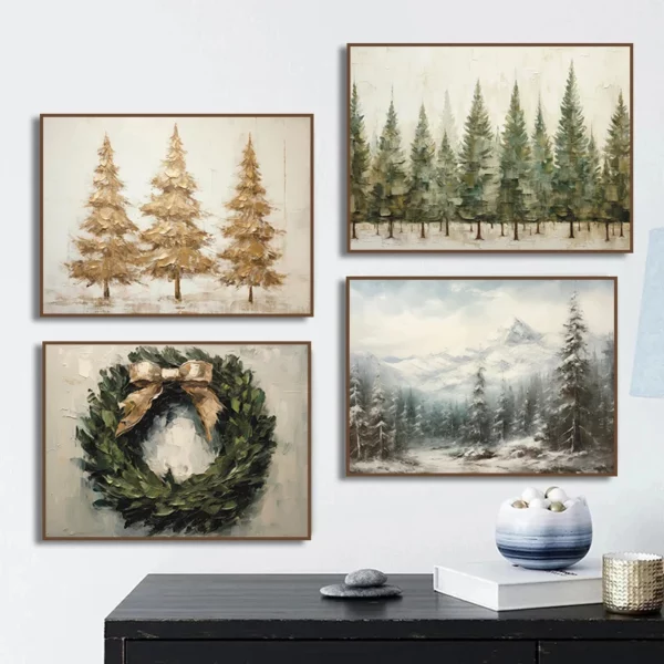 Ces affiches décoratives de Noël sont idéales pour créer une ambiance festive, cosy et raffinée dans votre salon, votre entrée ou même votre chambre. Grâce à leurs tons naturels, beige, vert et doré, elles s’intègrent facilement dans une décoration moderne, scandinave ou traditionnelle.