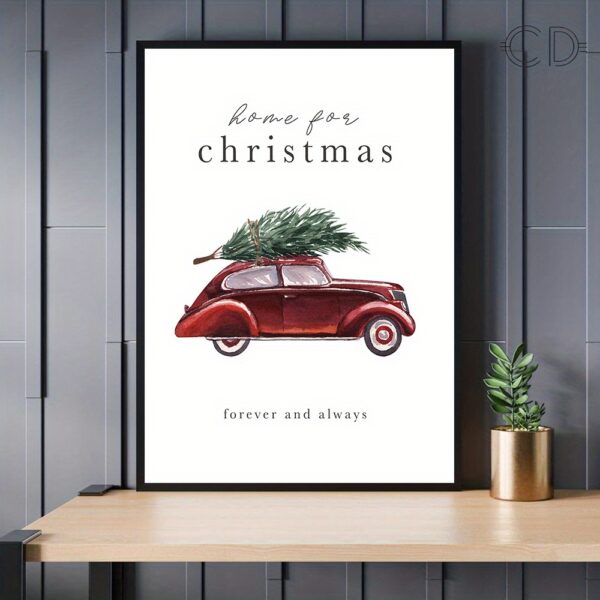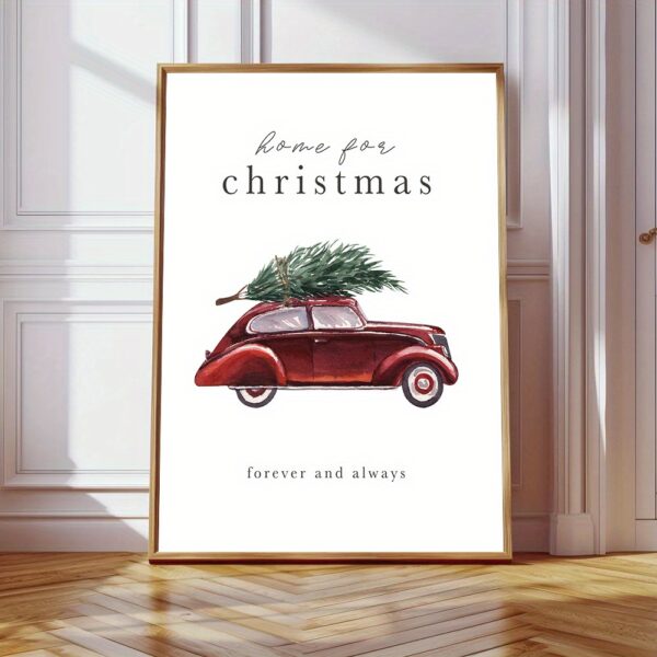 Affiche Voiture Vintage de Noël – Décoration Murale Home for Christmas