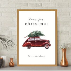 Affiche Voiture Vintage de Noël – Décoration Murale Home for Christmas