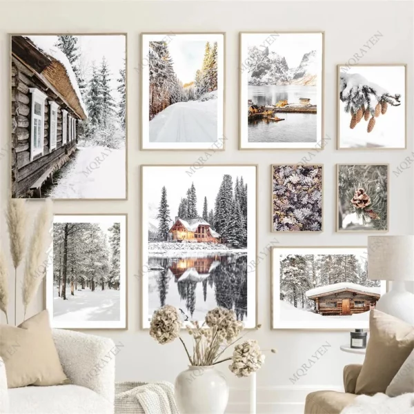 Affiches Hiver & Chalets Enneigés – Décoration Murale Scandinave et Ambiance Cocooning