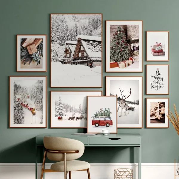 Plongez votre intérieur dans la magie de l’hiver avec notre collection d’affiches décoratives de Noël inspirées des paysages enneigés, des chalets chaleureux et de l’authenticité scandinave. Parfaites pour créer une ambiance cosy et festive, ces affiches transforment instantanément votre salon, entrée ou chambre en véritable refuge hivernal.