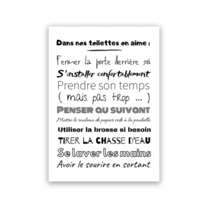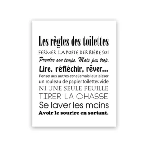 Affiches humour salle de bain et toilettes – Règles déco murales originales
