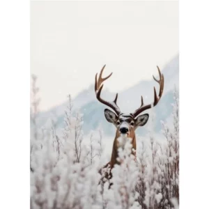Parfaites pour un salon, une chambre, un chalet ou un intérieur au style scandinave, ces affiches créent une ambiance douce, sereine et chaleureuse. La composition met en valeur deux cerfs majestueux : l’un avançant dans la forêt enneigée, l’autre apparaissant derrière des herbes givrées. Une harmonie visuelle qui apporte profondeur et raffinement à votre décoration murale.