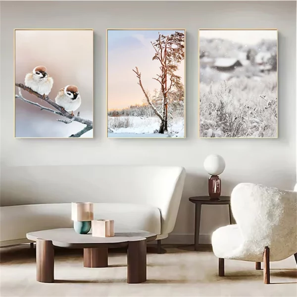 L’ensemble forme une composition cohérente qui invite au calme, à l’évasion et à la magie de l’hiver. Que votre style soit scandinave, chalet moderne ou nature minimaliste, ces affiches sublimeront votre décoration murale.