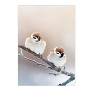 Deux oiseaux posés sur une branche givrée, symboles de douceur.