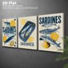 Triptyque Sardines – Décoration Murale Cuisine | Style Vintage & Bord de Mer