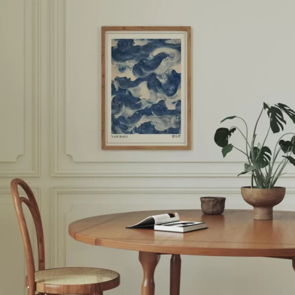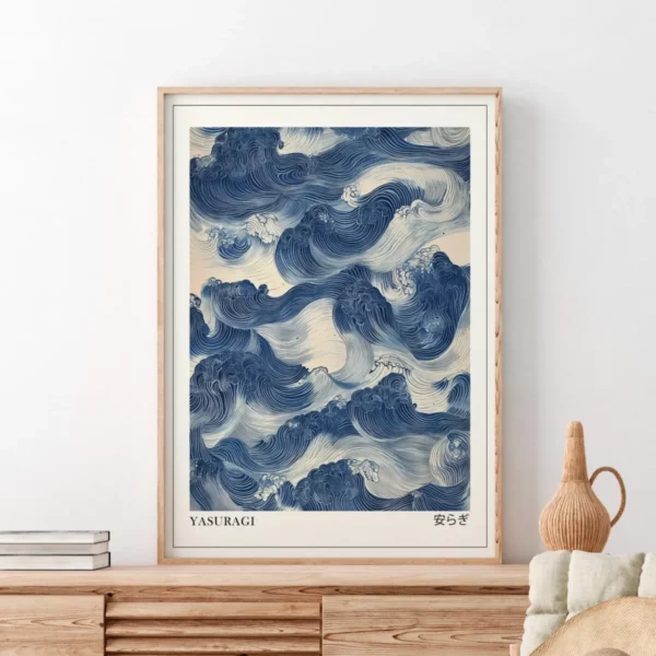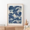 Affiche sur toile abstraite de la mer ondulée bleue rétro japonaise