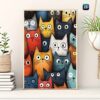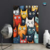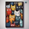 Ajoutez une touche de fantaisie et de bonne humeur à votre intérieur avec cette affiche de chats colorés au style graphique moderne. Chaque chat, avec ses grands yeux expressifs et ses couleurs vibrantes, apporte une personnalité unique à cette composition joyeuse et originale.